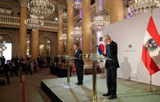 오스트리아를 국빈방문 중인 문 대통령은 이날 호프부르크궁에서 열린 알렉산더 판 데어 벨렌 대통령과의 정상회담 직후 가진 공동기자회견에서 "한국이 글로벌 백신 허브 역할을 할 경우 북한도 당연히 협력 대상"이라며 이같이 말했다.