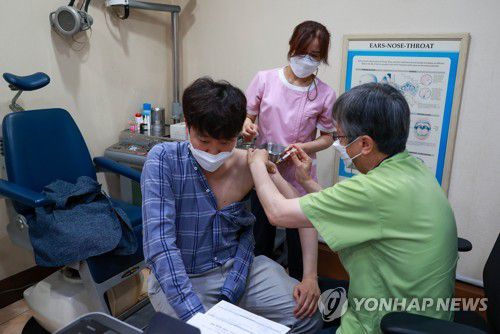(서울=연합뉴스) 이동환 기자 = 민방위 대원인 국민의힘 이준석(36) 대표가 15일 노원구 상계동의 한 병원에서 신종 코로나바이러스 감염증(코로나19) 백신을 접종했다.