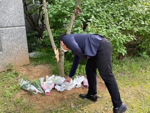사건 현장에서 숨진 여중생들 추모하는 시민 |