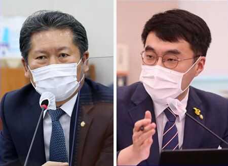 더불어민주당 정청래(왼쪽), 김남국 의원. /국회사진기자단 |