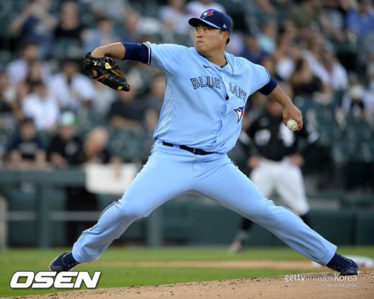 류현진은 16일(이하 한국시간) 미국 뉴욕주 버팔로 세일런필드에서 열린 2021 메이저리그 뉴욕 양키스와의 홈 3연전 1차전에 선발 등판해 1회 2사 1, 2루 위기를 무실점으로 막아냈다.