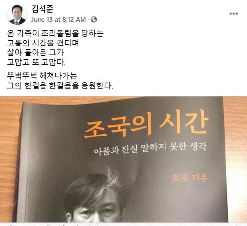 (부산=연합뉴스) 조정호 기자 = 진보 성향인 김석준 부산시교육감이 사회관계망서비스(SNS)에 조국 전 법무부 장관이 쓴 책을 읽고 그를 응원하는 글을 올려 논란이 되고 있다.