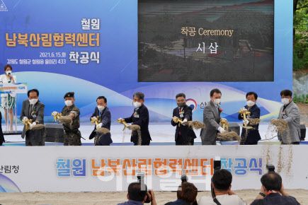 15일 강원도 철원에서 ‘철원 남북산림협력센터’ 착공식이 열리고 있다.