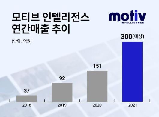 모티브 인텔리전스는 2019년 연간 매출 92억 원, 2020년 151억 원을 기록했으며 2021년에는 300억 원대 매출을 예상한다고 밝혔다. |