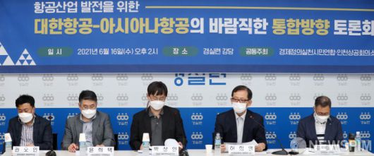 [서울=뉴스핌] 정일구 기자 = 허희영 한국항공대 경영학과 교수가 16일 오후 서울 종로구 경제정의실천시민연합(경실련) 강당에서 경실련·인천상공회의소 공동주최로 열린 항공산업 발전을 위한 대한항공-아시아나항공의 바람직한 통합방향 토론회에서 발제를 하고 있다. 2021.06.16 mironj19@newspim.com