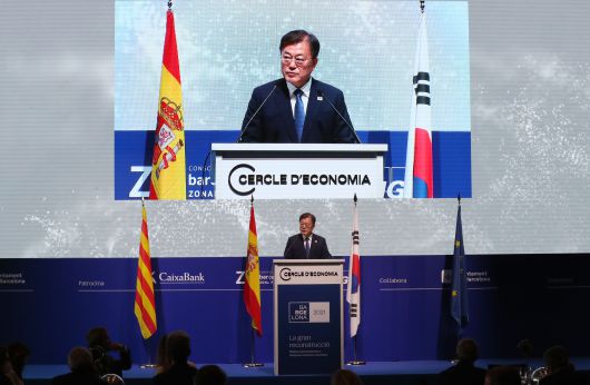 문 대통령은 이 자리에서 한·스페인 양국의 디지털·그린 경제 협력을 강조했다. 문 대통령은 “이제 협력을 잘하는 나라가 세계의 주인공이 되고 디지털·그린 경제에서 앞서가는 나라가 세계 경제를 이끌 것”이라며 “스페인과 한국이 먼저 시작하자”고 했다.