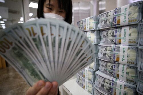 서울 중구 하나은행 본점 위변조대응센터에서 직원이 달러화를 정리하고 있다. 연합뉴스 |