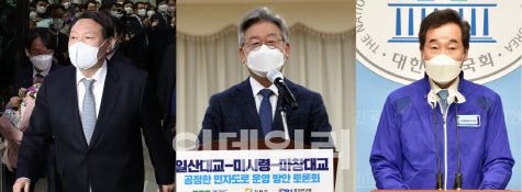 차기 대선주자 지지도에서 이재명(가운데) 경기지사와 윤석열(왼쪽) 전 검찰총장의 양강구도가 지속되고 있는 가운데 이 지사가 오차범위 내에서 윤 전 총장을 앞섰다는 여론조사 결과가 17일 나왔다.(사진=이데일리DB) |
