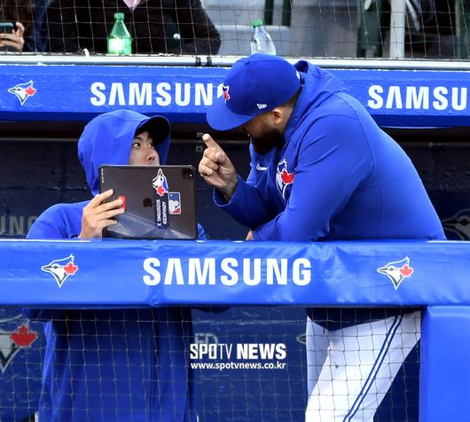 토론토 특급 유망주 알렉 마노아와 태블릿 영상을 보며 분석에 들어갑니다.
