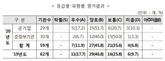 등급별·유형별 평가결과. / 자료=기획재정부 |