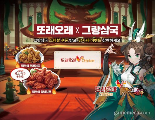 이와 함께 풍성한 상품을 선물하는 경품 응모 이벤트도 열린다. ‘스페셜 쿠폰’ 아이템 수령 후 그랑삼국 공식 카페를 통해 또래오래 제휴 이벤트에 응모하면 ▲LG 스타일러 ▲LG 시네빔 ▲에어팟 프로 ▲백화점 상품권 ▲또래오래 치킨 상품권 등을 증정한다.
