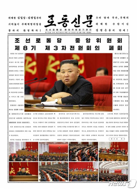 (평양 노동신문=뉴스1) = 북한이 지난 15일부터 진행한 노동당 중앙위원회 8기 3차 전원회의가 나흘만에 폐막했다고 19일 당 기관지 노동신문이 보도했다. 신문은 김정은 총비서가 폐막사를 통해 |