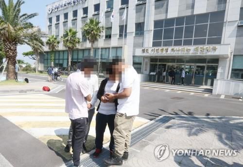 제주출입국·외국인청 앞에 모인 난민 신청자들. [연합뉴스 자료사진] |