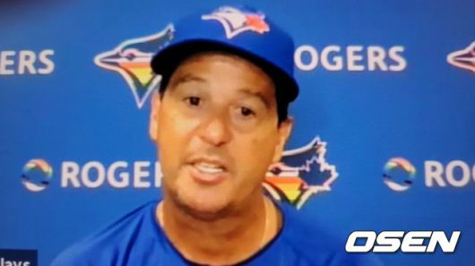 [사진] 토론토의 찰리 몬토요 감독이 21일(한국시간) 오리올 파크 앳 캠든야즈에서 벌어진 볼티모어와의 경기를 마친 뒤 화상 인터뷰를 진행하고 있다. <토론토 블루제이스 구단 제공 영상 캡처> |