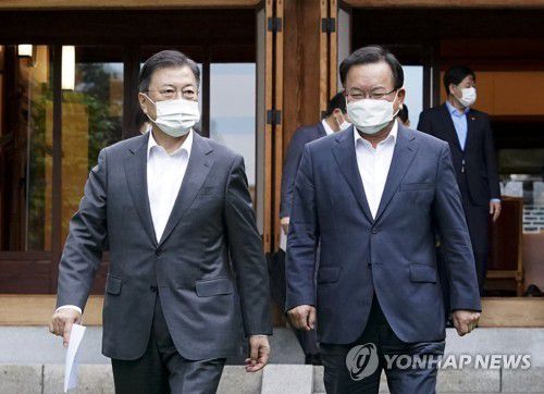 대화하는 문재인 대통령과 김부겸 국무총리 |