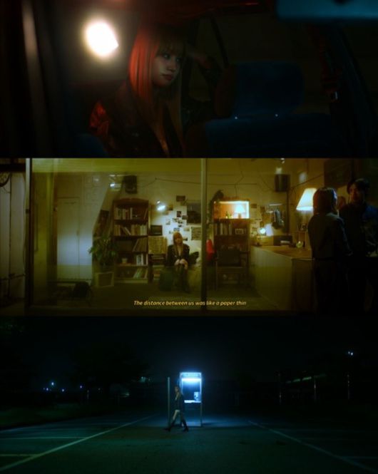 이어 쏠이 어두운 밤거리, 아무도 없는 공중전화 박스에서 홀로 방황하는 모습이 그려진다. 쓸쓸해보이는 표정이 몰입감을 더한다.