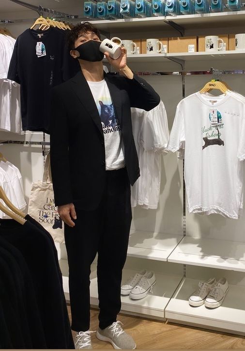 공개된 사진 속에는 박수홍이 반려묘 다홍이와 함께 모델로 활약한 한 패션 브랜드 매장에서 인증샷을 남기고 있는 모습이 담겨 있다.