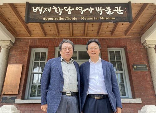 민경찬 한예종 교수와 김종헌 배재학당역사박물관장 |