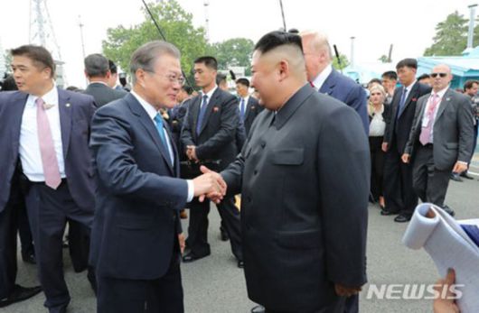【서울=뉴시스】북한 노동신문은 김정은 국무위원장이 지난달 30일 판문점 남측지역에서 문재인 대통령, 도널드 트럼프 미국 대통령과 만났다고 1일 보도했다. 2019.07.01. (출처=노동신문) photo@newsis.com <저작권자ⓒ 공감언론 뉴시스통신사. 무단전재-재배포 금지.> /사진=뉴시스화상 |