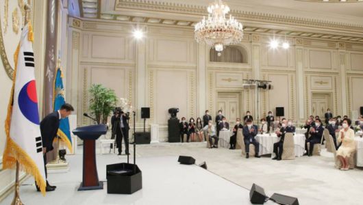 문재인 대통령이 24일 오후 코로나19(COVID-19) 확산 이후 처음으로 청와대 초청 오찬 행사를 개최했다.