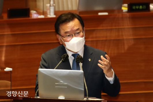 김부겸 국무총리가 24일 국회 본회의장에서 열린 교육-사회-문화분야 대정부질문에서 의원들의 질문에 답변하고 있다. 국회사진기자단 |