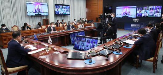 문재인 대통령이 25일 오전 청와대에서 화상으로 열린 제4차 한-중미통합체제(SICA) 정상회의에서 중미통합체제 의장인 카를로스 알바라도 코스타리카 대통령의 발언을 듣고 있다. (사진=연합뉴스) |