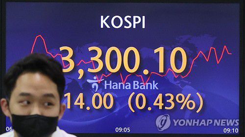 이날 오전 9시 코스피는 전날보다 14.84포인트(0.45%) 오른 3,300.94를 기록하며 사상 처음으로 3,300선을 돌파했다.