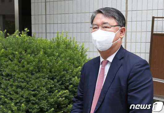 (서울=뉴스1) 박정호 기자 = 최종구 전 이스타항공 대표가 25일 낮 서울 양천구 신정동 서울남부지방법원에서 열린 공판 출석 후 법원 청사를 나서고 있다. 2021.6.25/뉴스1