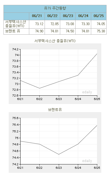 [표]유가 주간 동향