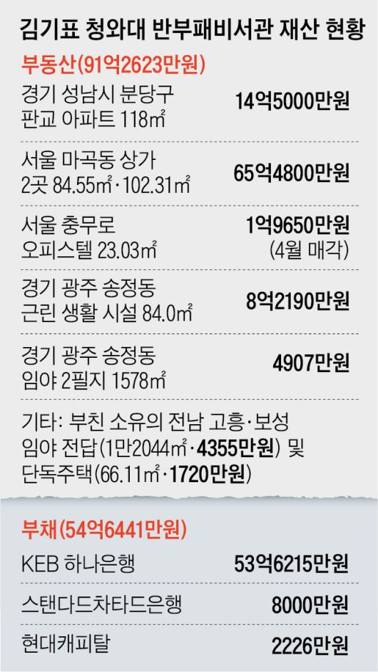 이번 김 비서관의 투기 의혹은 임명된 3개월동안 알려지지 않다가 최근 관보에 고위공직자 재산신고 내역이 실리고 언론이 이를 취재하면서 드러났다. 관보를 보면, 김 비서관의 부동산 재산은 서울 강서구 마곡동 상가 2채(65억4800만원) 등 총 91억2600만원 상당이며, 금융 채무가 56억2400만원에 달한다. 상당 부분 대출로 부동산 매입자금을 마련한 것으로 보인다. 이를 두고 문재인 정부가 들어선 2017년 전후 주거 목적이 아닌 수도권 부동산에 이른바 ‘영끌(영혼까지 끌어모아 구입)’ 투자를 했다는 비판도 나왔다.