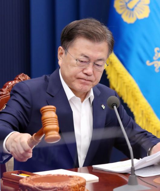 [서울=뉴시스]김진아 기자 = 문재인 대통령이 21일 오전 청와대에서 국무회의를 주재하고 있다. 2021.06.22. bluesoda@newsis.com <저작권자ⓒ 공감언론 뉴시스통신사. 무단전재-재배포 금지.> /사진=뉴시스화상 |