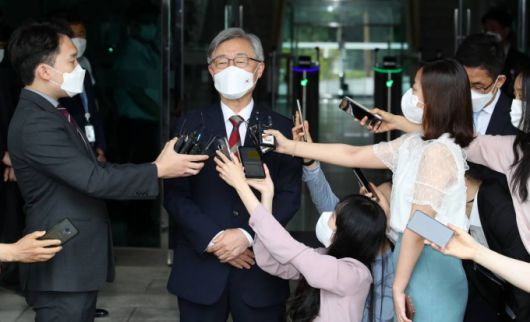 [서울=뉴시스조성우 기자 = 최재형 감사원장이 28일 오전 서울 종로구 감사원에 출근하며 취재진 질문에 답하고 있다. 2021.06.28. xconfind@newsis.com |