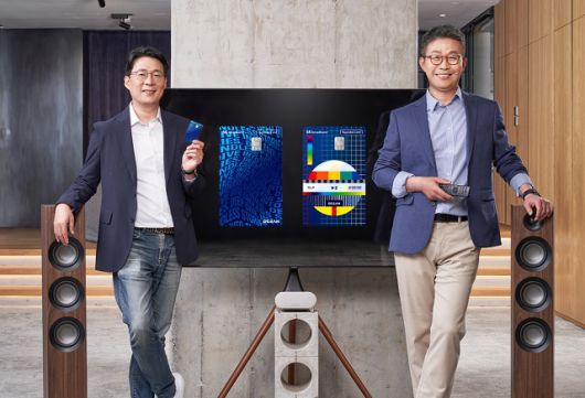 SK브로드밴드 최진환 대표(오른쪽)와 현대카드 김덕환 대표가 SK브로드밴드·현대카드 오션 에디션과 인터넷 에디션 출시를 맞아 사진촬영을 했다. /사진=SK브로드밴드 |