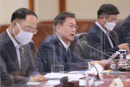 이날 회의는 문 대통령의 모두발언에 이어 홍남기 부총리 겸 기획재정부 장관의 '2021년 하반기 경제정책방향' 보고, 참석자들의 '민생경제 활력 제고', '코로나19 격차를 완화하는 포용적 회복'에 대한 논의로 진행됐다.