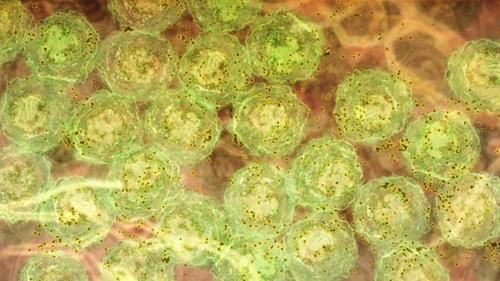 염증 신호를 받아 항체(갈색)를 형성하는 B세포(녹색) |