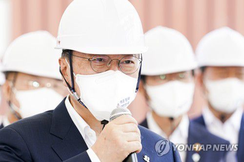문 대통령은 "우선 선박 대형화에 따라 HMM의 1만3천TEU급 컨테이너선 12척 추가 확보를 지원할 것"이라며 "친환경 선박 기술에 2천500억원을 투자해 2050년까지 무탄소 선박을 상용화하겠다"고 약속했다.