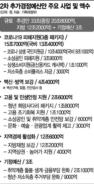 [세종=아시아경제 김현정 기자, 장세희 기자] 정부가 1일 33조원에 달하는 2차 추가경정예산(추경)안을 편성했지만 벌써부터 지원에서 소외된 일부 청년, 맞벌이 부부를 중심으로 형평성 논란이 일고 있다. 일각에서는 한꺼번에 풀린 재정이 소비를 부추기기보다는 자산시장으로 흘러들어 가거나 인플레이션을 유발할 수 있다고 우려한다.