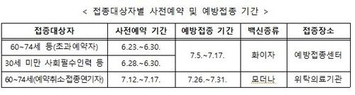 60∼74세 사전예약자 중 건강 상태나 변경 방법 미숙, 의료기관 실수 등으로 인해 예약이 취소된 10만명은 오는 12∼17일 예약을 하고 26∼31일 위탁의료기관에서 모더나 백신을 맞는다.