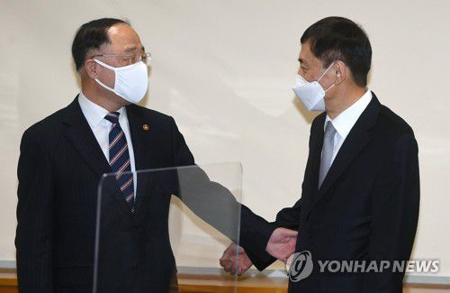 (세종=연합뉴스) 곽민서 기자 = 홍남기 부총리 겸 기획재정부 장관이 이주열 한국은행 총재를 만난다.
