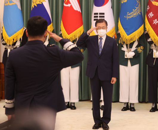 [헤럴드경제=박병국 기자] 문재인 대통령이 2일 박인호 신임 공군참모총장의 진급 신고를 받았다.