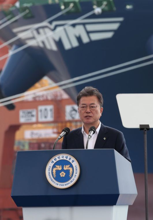 그로부터 3년이 지난 지난달 29일 문 대통령은 '해운산업 리더국가 실현전략 선포 및 한울호 출항식'에서 "'해운업 재건'에 시동을 건 지 3년, 한국해양진흥공사 설립과 HMM이 신규 발주한 초대형 컨테이너선 20척을 계기로 우리 해운업이 기적같이 살아났다"며 "지난해 첫 출항한 세계 최대 컨테이너선 '알헤시라스 호'를 시작으로 만선이 계속되고 있다. 해운 강국의 자존심을 다시 찾았다"고 기뻐했다.
