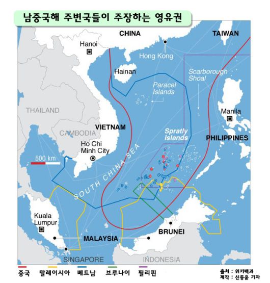 남중국해 주변국들이 주장하는 영유권 [위키백과] |