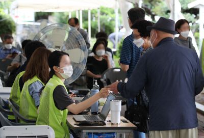 5일 오전 서울 강서구 예방접종센터에서 시민들이 화이자 백신 접종을 기다리고 있다. 연합뉴스 |