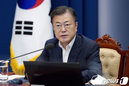 (서울=뉴스1) 이광호 기자 = 문재인 대통령이 5일 오후 청와대 여민관에서 열린 수석·보좌관회의에서 발언하고 있다. 2021.7.5/뉴스1 |