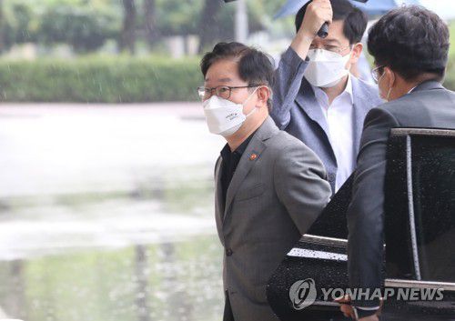 (서울=연합뉴스) 송진원 기자 = 김학의 전 법무부 차관의 불법 출국금지 사건을 제보했던 현직 검사가 박범계 법무부 장관을 '불이익조치 금지 위반'으로 국민권익위원회에 신고했다.