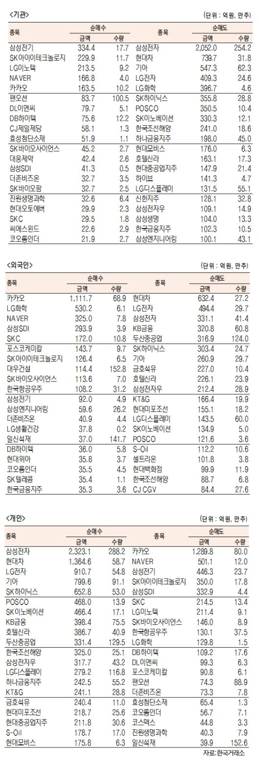 [표]유가증권 기관·외국인·개인 순매수·도 상위종목(7월 7일-최종치)