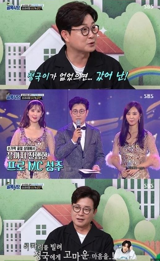 방송인 김성주가 방탄소년단(BTS) 정국 덕분에 큰 화를 면했던 사연을 밝히며 고마운 마음을 전했다.