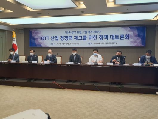 8일 한국 OTT포럼에서 진행한 'OTT 산업 경쟁력 제고를 위한 정책 대토론회'에서 자유 토론을 진행하고 있다. |