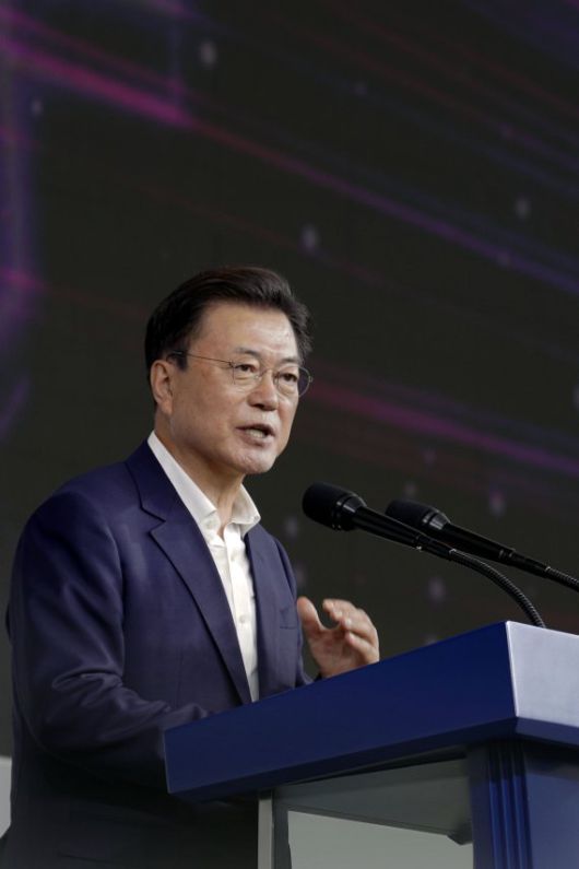 [청주=뉴시스] 김진아 기자 = 문재인 대통령이 8일 충북 청주시 LG에너지솔루션 오창 제2공장에서 열린 K-배터리 발전전략 보고 'K-배터리, 세계를 차지(charge)하다'에서 발언하고 있다. 2021.07.08. bluesoda@newsis.com <저작권자ⓒ 공감언론 뉴시스통신사. 무단전재-재배포 금지.> /사진=뉴시스화상 |