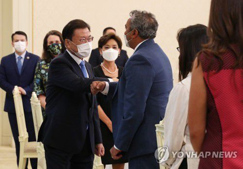 (서울=연합뉴스) 임형섭 기자 = 문재인 대통령은 9일 청와대에서 미국 의회 코리아스터디그룹(CSGK) 대표단을 접견했다.